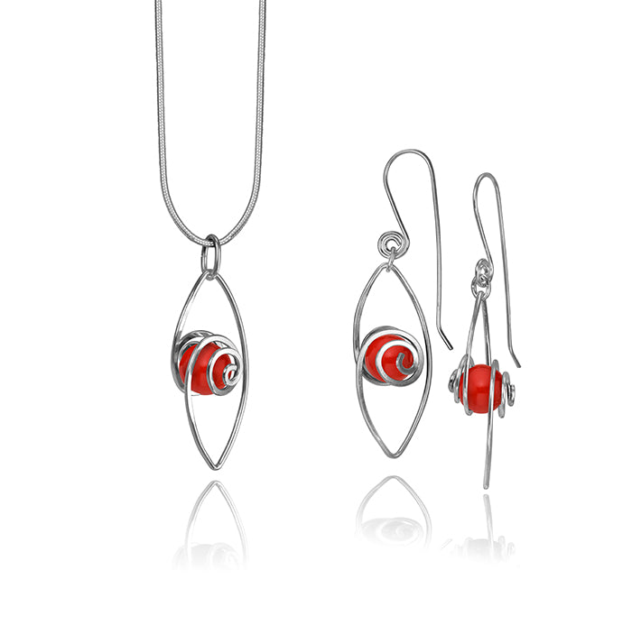 Sterling Silver with Red Pearl or Stone Pendant and Earring set.